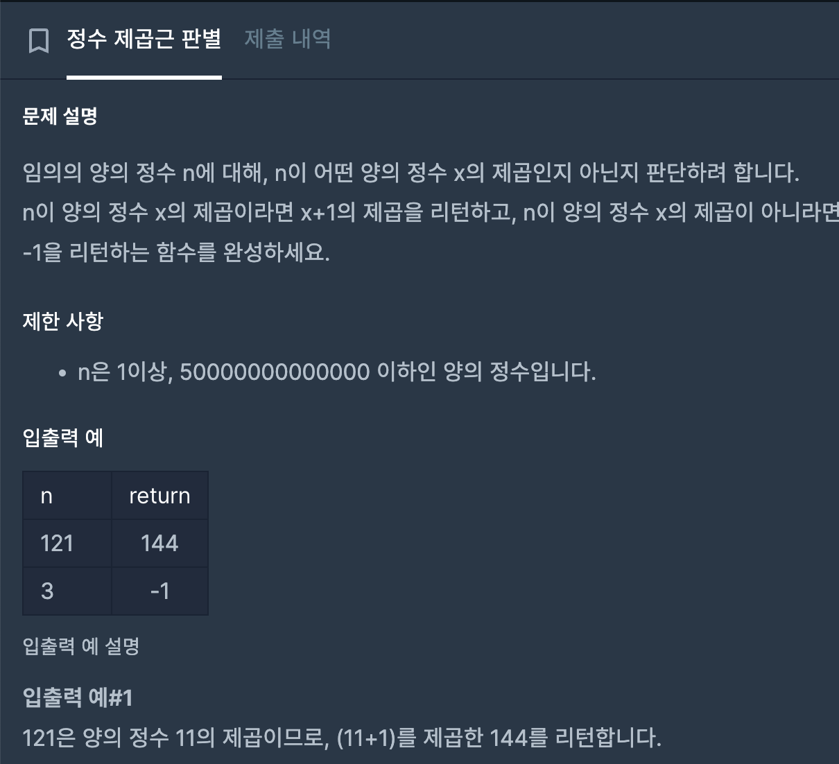 if (sqrt % 1 !== 0) { // 나머지를 이용해 소숫점 판별, 제곱근이 아닐 경우